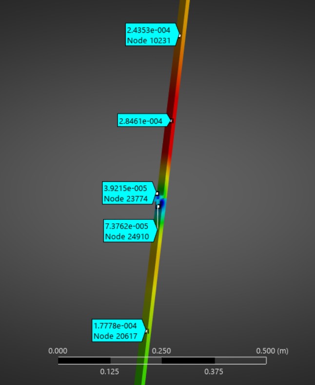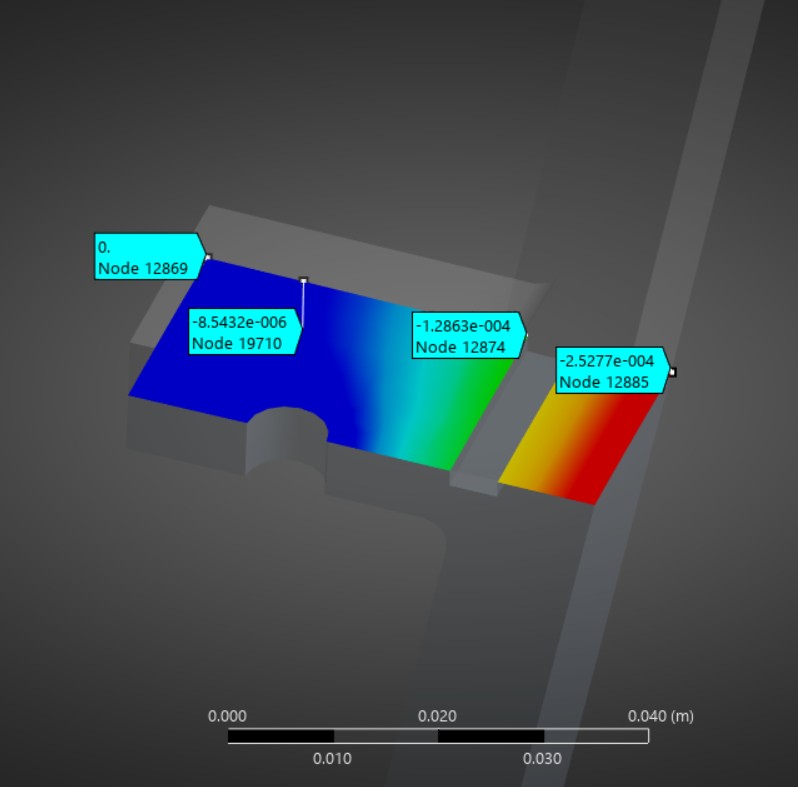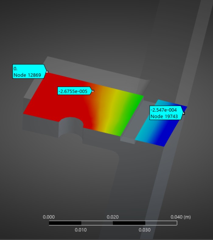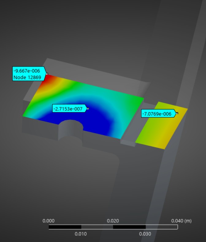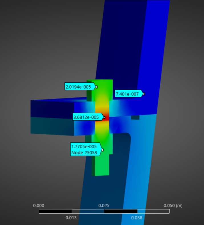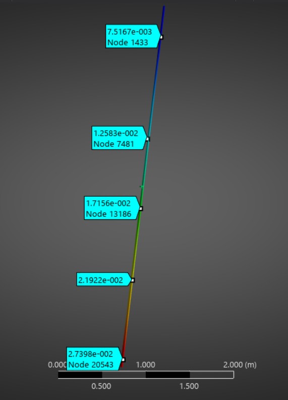 The results revealed that after the third time step, there might come to be a gap that is too big near the regen channel, which may cause some problems, as fuel could leak or could mix with oxidizer. However, that result is likely because of the frictionless boundary condition, and in a further analysis that would need to be refined, because, after all, the F-1 engine did see flight and successfully sent astronauts to the moon.