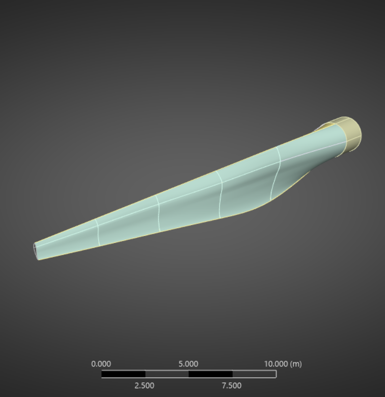 The geometry is the wind turbine blade itself, and does not contain the fluid that surrounds the blade like the CFD analysis did.
